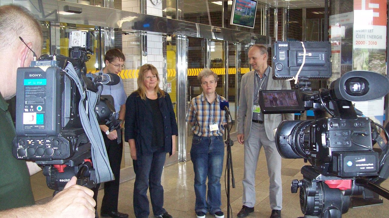 Ein japanisches Fernsehteam begleitete uns zwei Tage lang. Wir trafen uns zuerst im Aktionsbüro STOPPT TEMELIN in Bad Steben. Hier wurde ein längeres Interview mit Brigitte Artmann und Wolfgang Müller gedreht. Im Anschluss ging es zu unserem grünen Stammtisch in Selb. Am nächsten Tag fuhren wir gemeinsam zum AKW Temelin. Hier wurden wieder zahlreiche Filmaufnahmen und Interviews aufgezeichnet.