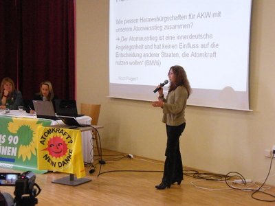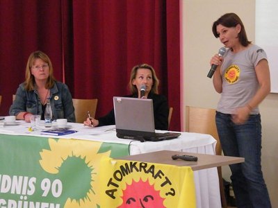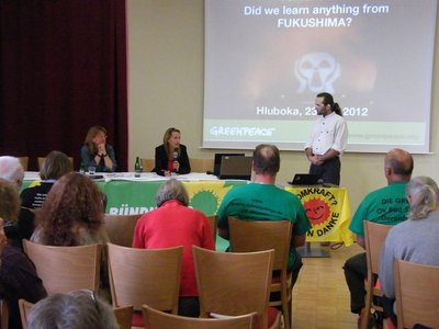 Übersetzung-ohne Gewähr ! Es wurde gesagt, dass ein ähnlicher Besuch von einigen Dutzend Grünen, Greenpeace und anderen NGOs voriges Jahr auch schon von AKW-GegnerInnen und VertreterInnen der EE stattfand, (unsere Temelin Info-Fahrt 2011 mit Jan Haverkamp) und dass sie nach dem Besuch im AKW mit dem Direktor Milos Stepanovsky und der SUJB Chefin Dana Drabová diskutierten. Nicht nur über den "Fertigbau" des 3. und 4. Blocks. Der Direktor hat uns also begrüßt und er sagte, dass er "schrecklich froh" sei, weil es besser wäre, einander zuzuhören und miteinander zu reden, als einander gegenseitig mit Vorwürfen zu "beschießen", das was Du selbst gesagt hast, Brigitte, ist relativ gut zu verstehen und leicht verkürzt auch richtig übersetzt. (das Wort "Schweißnaht" fiel aber durch den Rost, und wurde übersetzt als "wollen wir, dass weitere AKWs untersucht werden"). Wir haben angeblich die Möglichkeit, das AKW zu besuchen und Fotos machen zu dürfen, begrüßt, Ziel war also der Austausch von Meinungen und Fakten. Milos Stepanowsky sagt dann, dass aufgrund von Analysen es in Tschechien wirklich das Risiko von blackouts gebe, geschweige denn welche ökonomischen Auswirkungen das habe, Dana Drabova sagt, dass es zu sehen ist, dass die Leute, die sie hier trifft, nachdenken, dass sie wirklich nachdenken, dass sie wahrscheinlich auch nie diese Barriere überschreiten würden (gemeint, dass sie AKWs positiv finden würden), dass das aber auch niemand von ihnen erwarten würde, auch sie (Drabova) habe Dinge, die ihr auf dieser Welt gefallen, und welche, wo das umgekehrt ist, aber andererseits sei die kritische Würdigung dessen wichtig, dass niemand absichtlich schaden wolle, dass wir alle eher wollen, dass was Gutes von uns übrigbleibt, nicht was Schlechtes. Insgesamt hätten dieses Jahr schon mehr als 26.000 Leute das AKW besucht, davon 246 aus Deutschland.