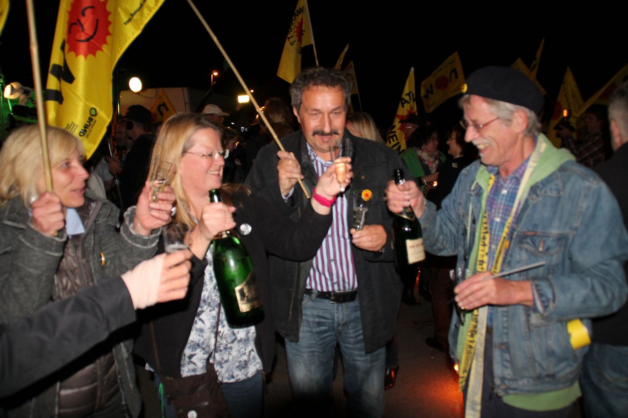 Auch ein Atomkraftgegner vom AKW Tihange folgte unserer Einladung. Wir feierten mit Krim Sekt und den extra hergestellten "Rissling-Sekt" aus Aachen.