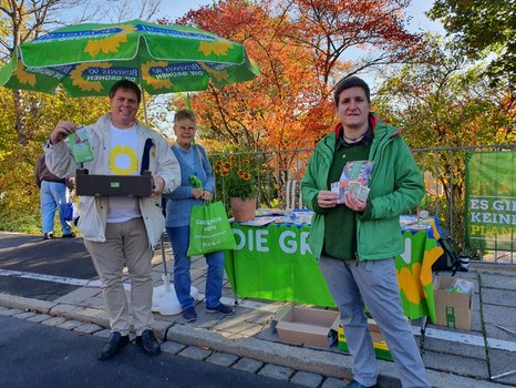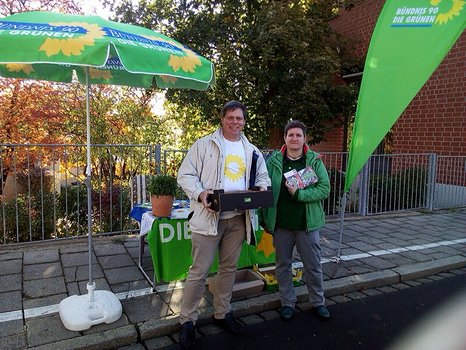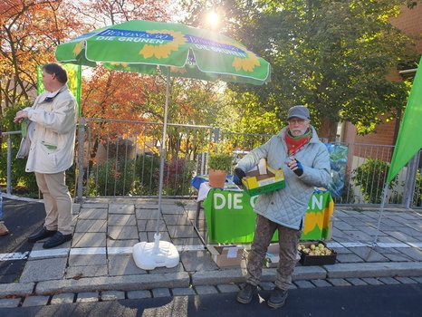 Bei schönstem Wetter hat sich der neu in Selb gegründete Ortsverband BÜNDNIS 90/DIE GRÜNEN auf dem Wochenmarkt am Samstag 12. Oktober 2019 vorgestellt und hat viele Selber Bürger*innen damit auf sich aufmerksam gemacht. Matthias Henneberger, Dieter Baumgärtel und Susann Fischer, die zugleich auch die grüne Spitzenkandidatin für die Stadtratswahlen im März nächsten Jahres ist, verteilten Bio-Äpfel und Blumensamentütchen, und freuten sich über die zahlreichen interessierten Gespräche.